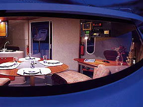 space make for easy cooking and entertaining. There is plenty of additional stowage under the wrap-around settee.
